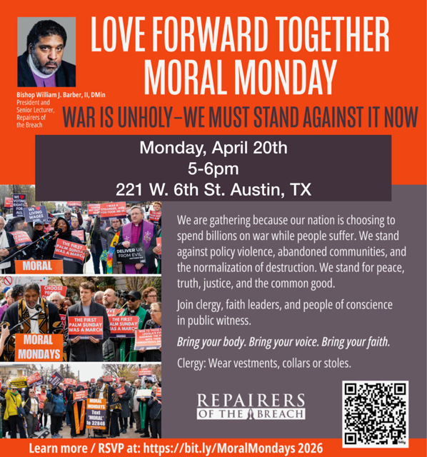 SHINE is honored to partner with Repairers of the Breach for their Moral Monday mobilizations in Austin. Please join us as WE gather to take a stand for peace, truth, justice, and the common good.
